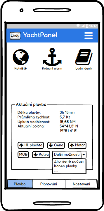 Dashboard Plavba