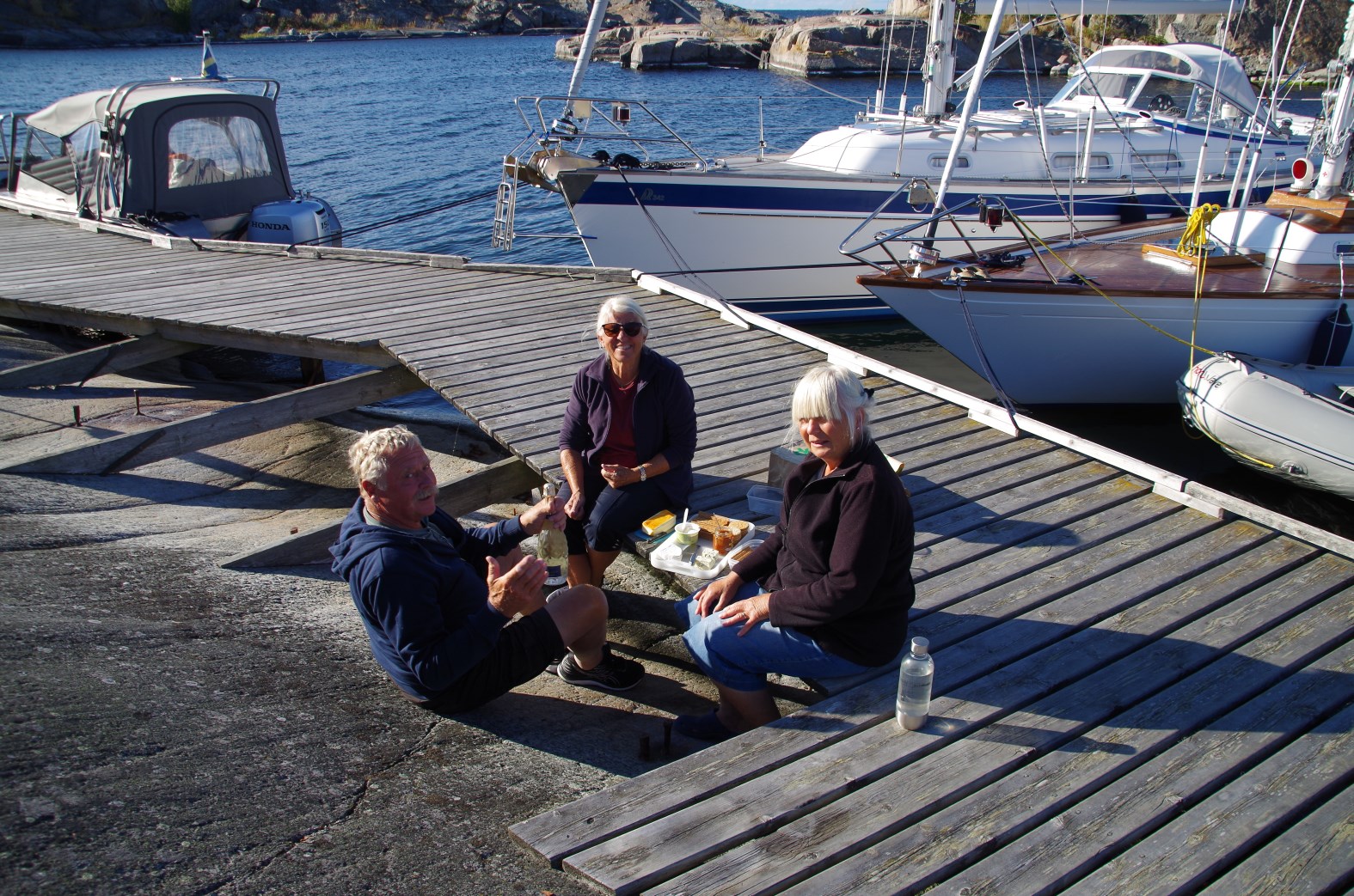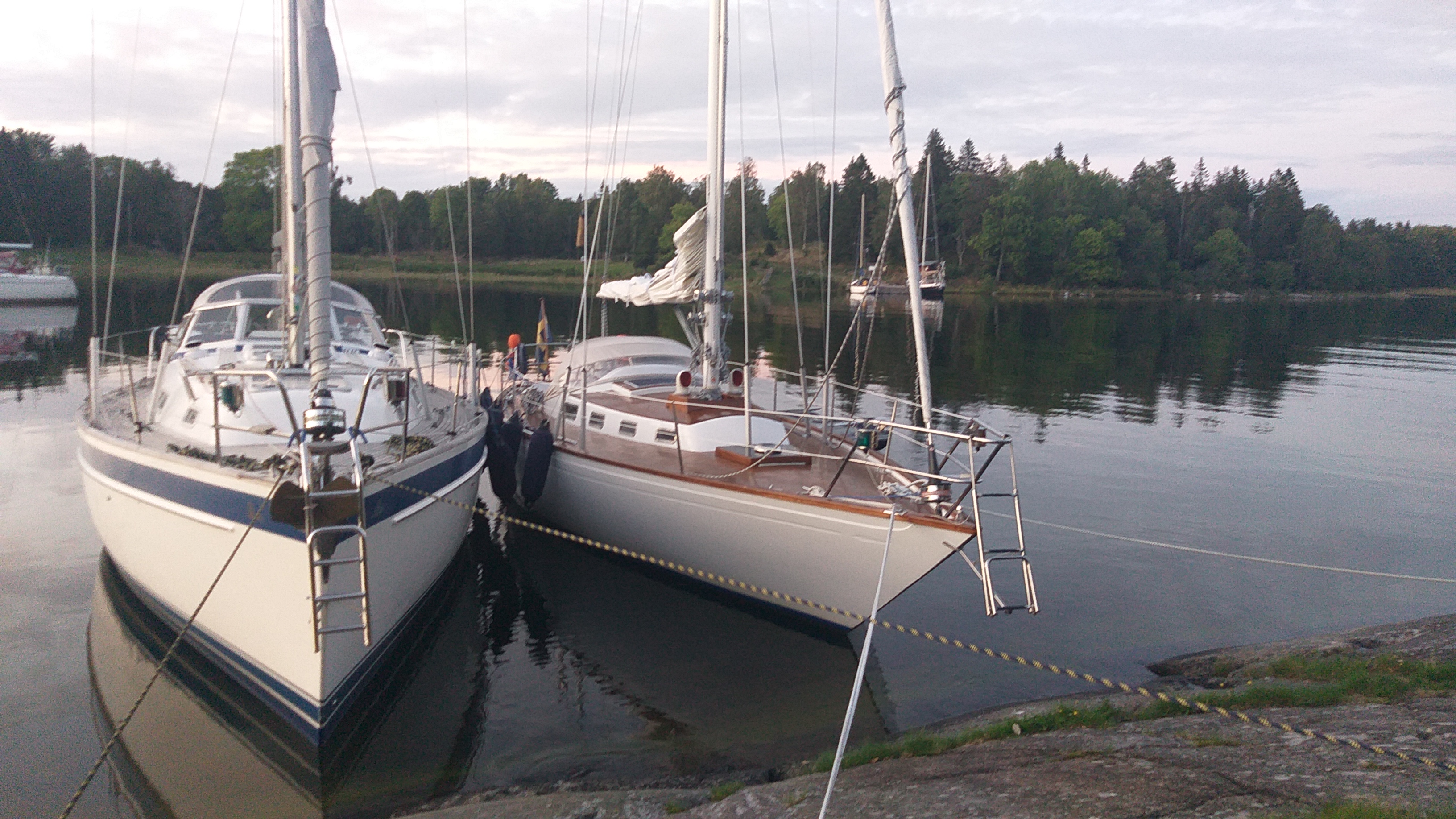 Důvod kotvit zádí ke břehu je že lodě mají kotvu s vrátkem na přídi. Ve Švédsku mají běžně lodě kotvu vpředu i vzadu.