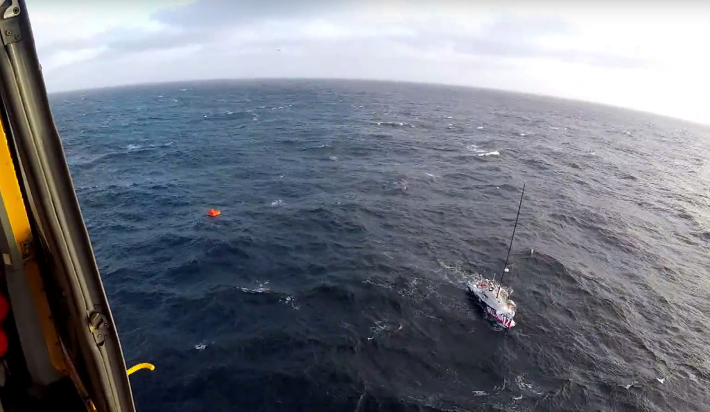 Michel Zambellis 950 Mono, Illumia 12, nabíral vodu a byl opuštěn, když byl zachráněn vrtulníkem Canadian Coast Guard.