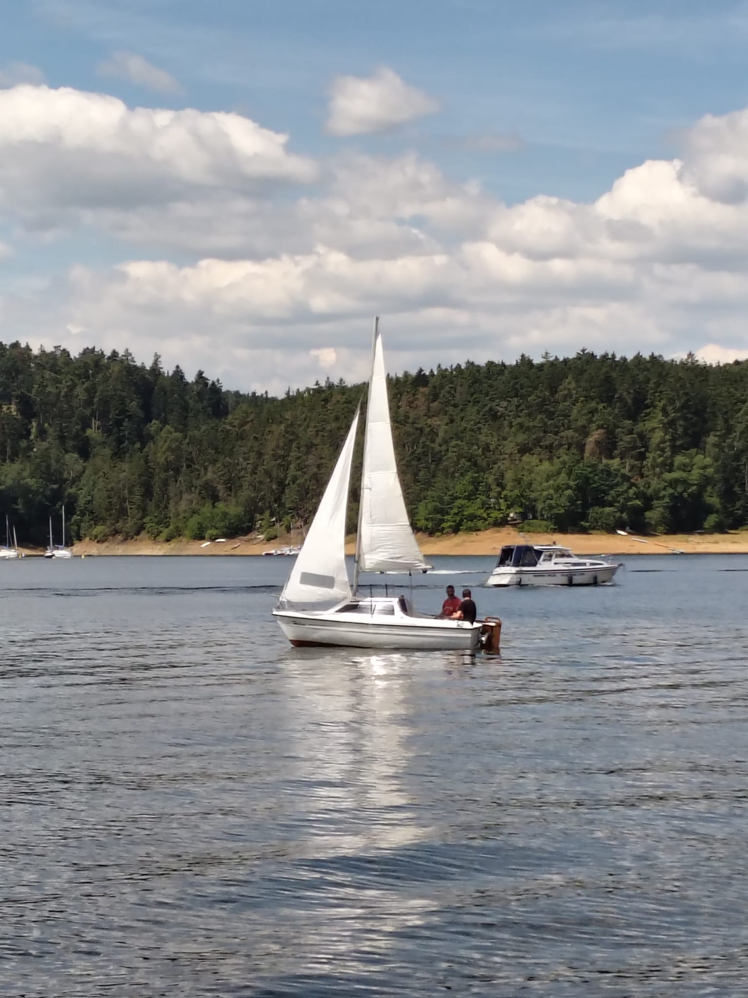 No a svezl jsem se na plachty, celkem to uhání, jeden člověk ji v klidu vyváží, tím jak je malá, tak vše doslova na dosah ruky.