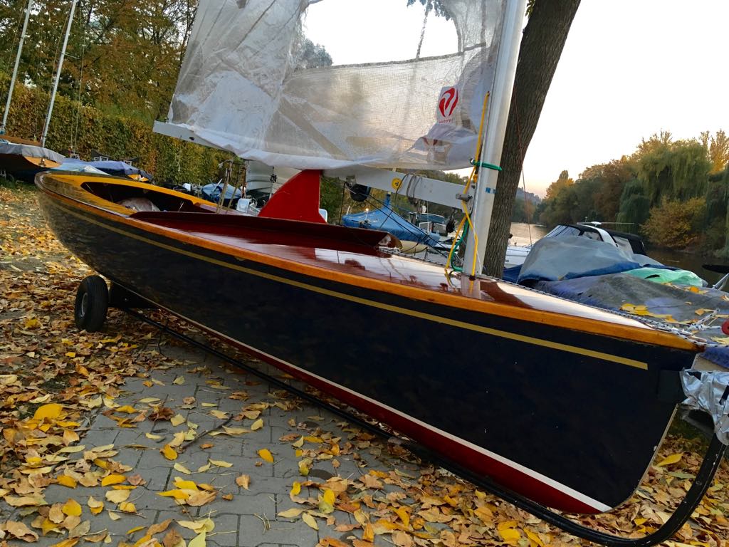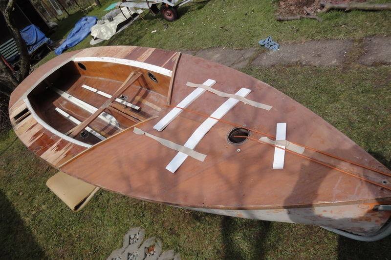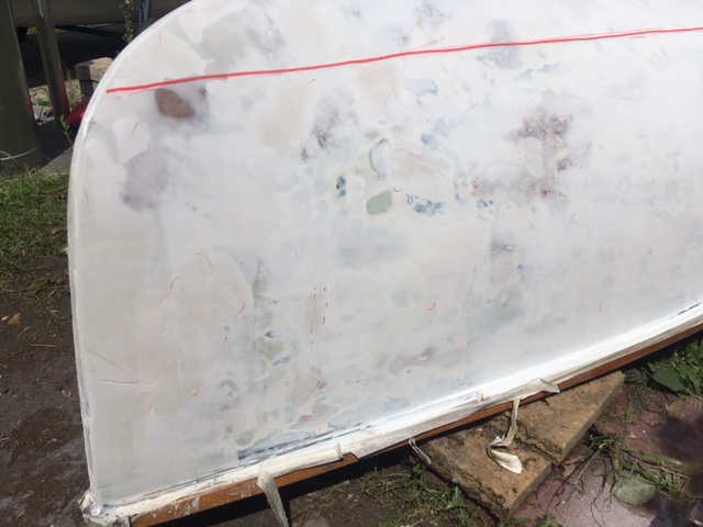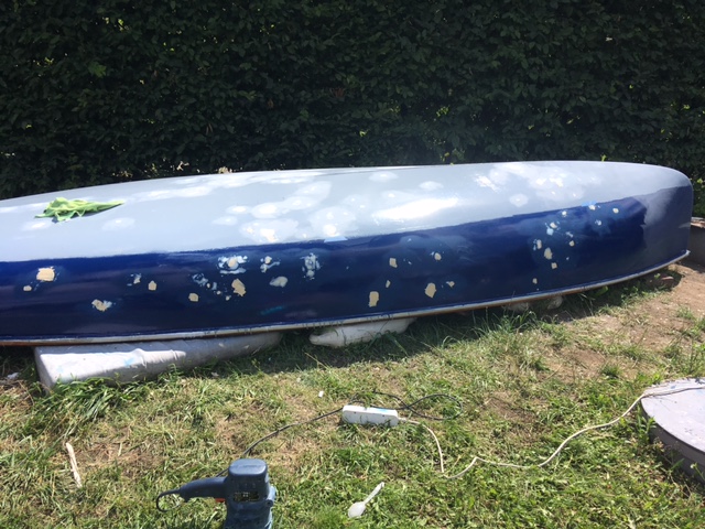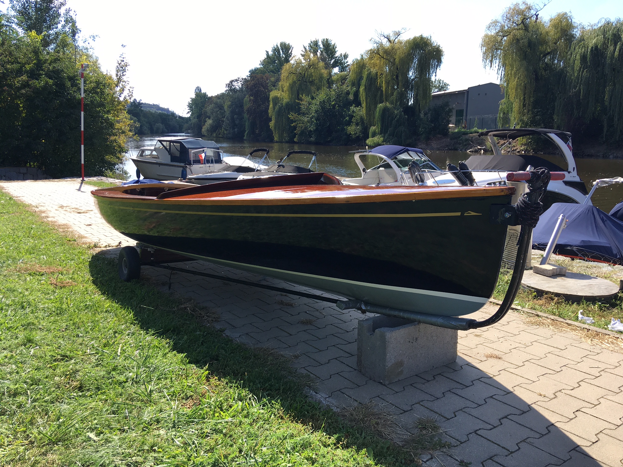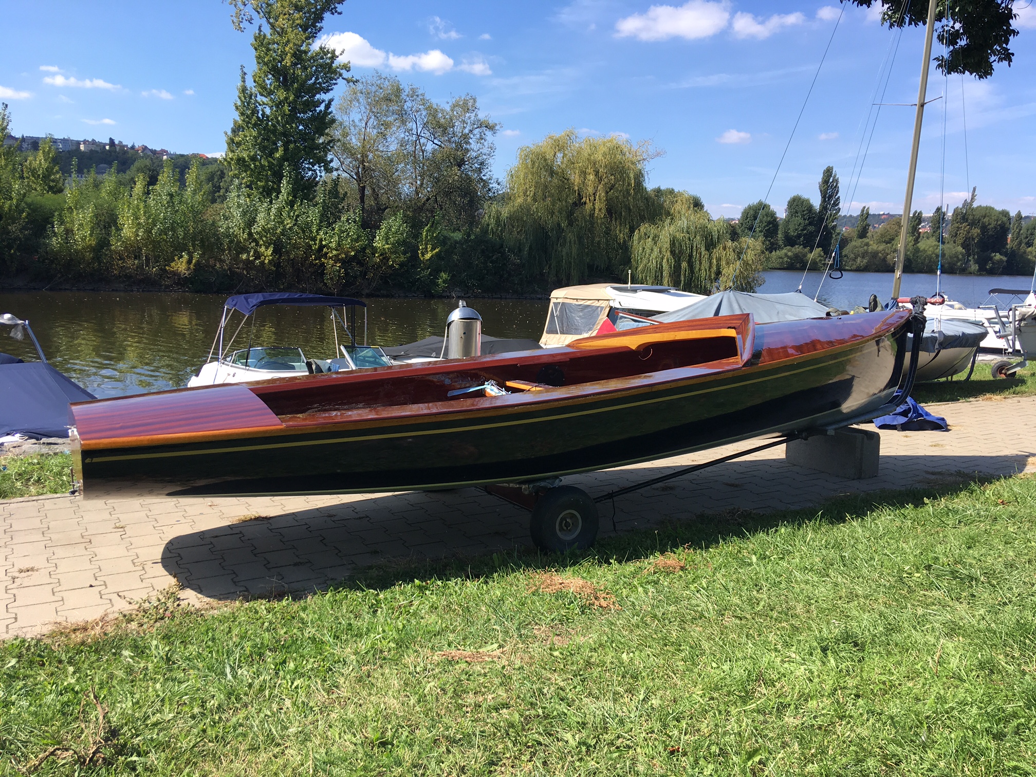 Letos prošla opět drobnou rekonstrukcí. Protože mě minulou sezónu trochu atakovali jiné lodě a neobešlo se to bez šrámů, stejně tak jako pracující dřevo trochu místy potrhalo vrstvy barvy, nebo sekání trávy v jachťáku "opískovalo" nátěr, rozhodl jsem se po zimě na nadcházející sezónu zbavit loď nátěrů a provést vše znovu dvoukomponentními nátěry.