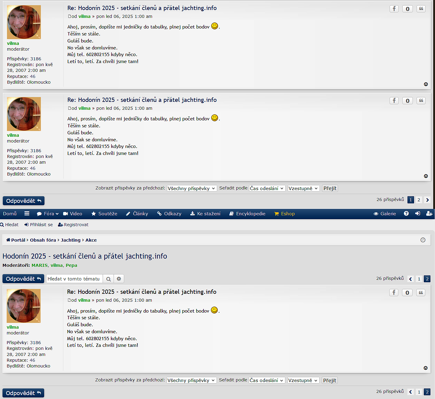 Přesto mám dobrou zprávu. Kolega Jarda, který byl na loňském setkání se mnou, se rozhodl reprezentovat Olomouc a zúčastní se místo mně. Nevím, jestli se mu podaří zapsat se do tabulky, ale věřím, že se mu podaří do Hodonína dorazit.