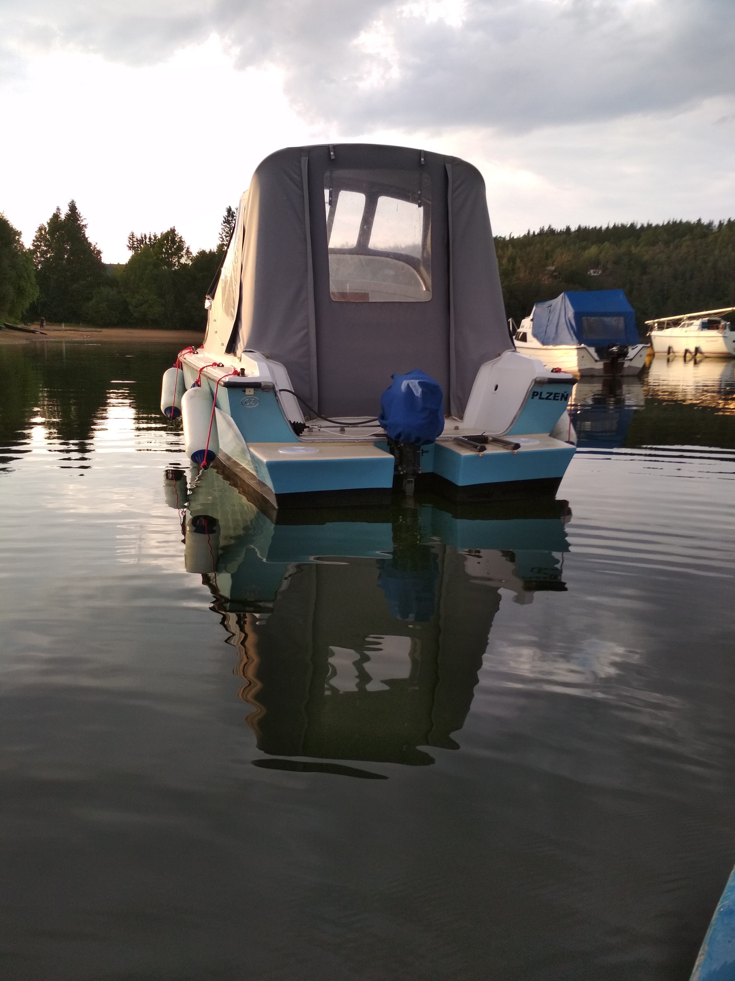 No, moje první myšlenka na home-made řízení se ubírala přes dva lanovody a ozubené kolo + kus řetězu. Velikostí ozubeného kola u volantu a kruhové výseče (ukotvení lan) u motoru bych si mohl krásně "nastavit" ty počty otáček volantu. Ale nevím, je-li možné udržel lana v bovdenu v dobré kondici. Nějaké přimazávání by bylo asi nutné. Vzdálenost cca 6 m a 20-25 HP motor. Zatím pouhá teorie. Ale od toho je tu zimní období, ne? Davide, ty máš na lodi jaký systém řízení? Předpokládám, že máš pořád stejnou loď a tím pádem kormidlo a ne přívěsný motor.
