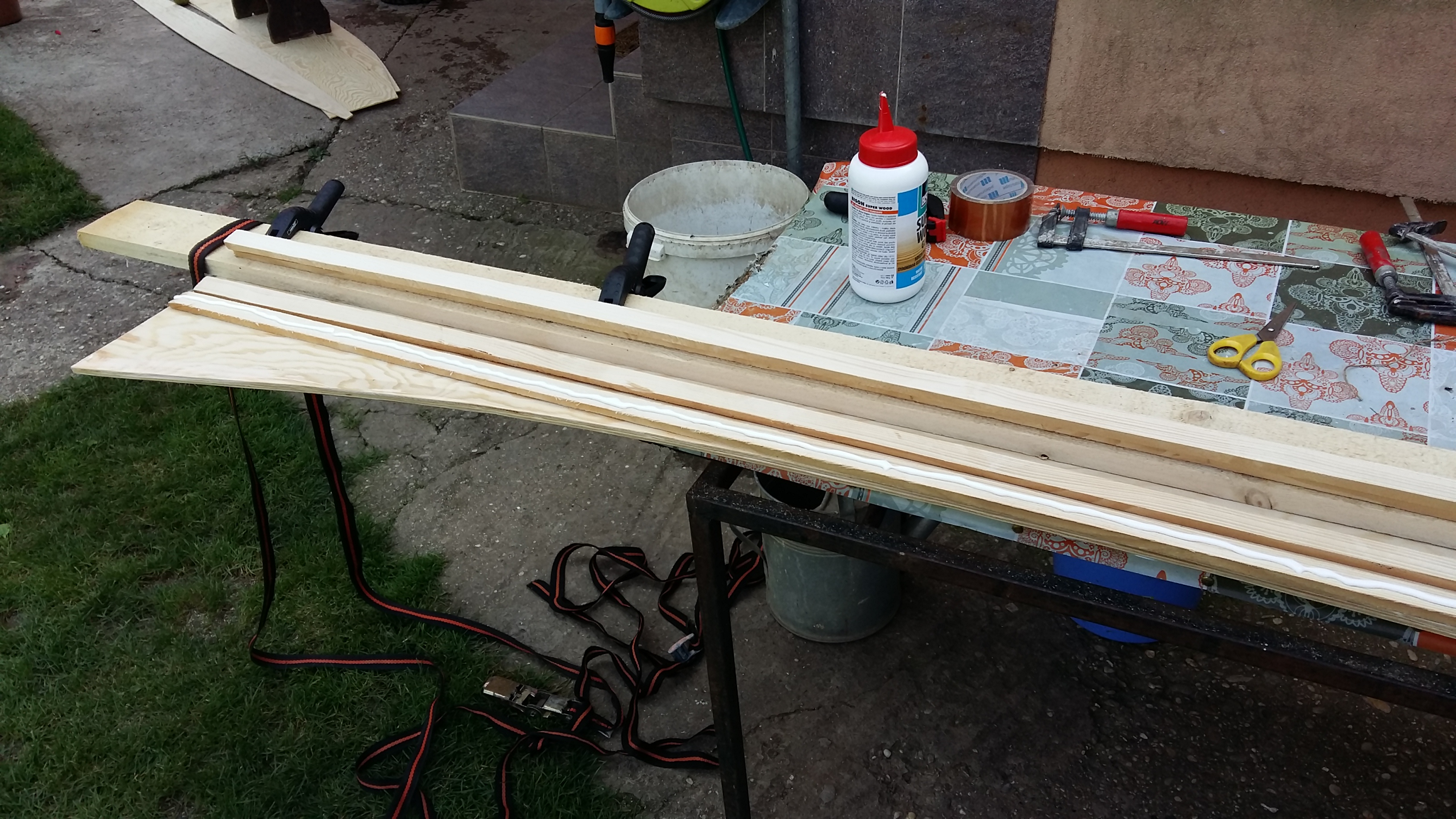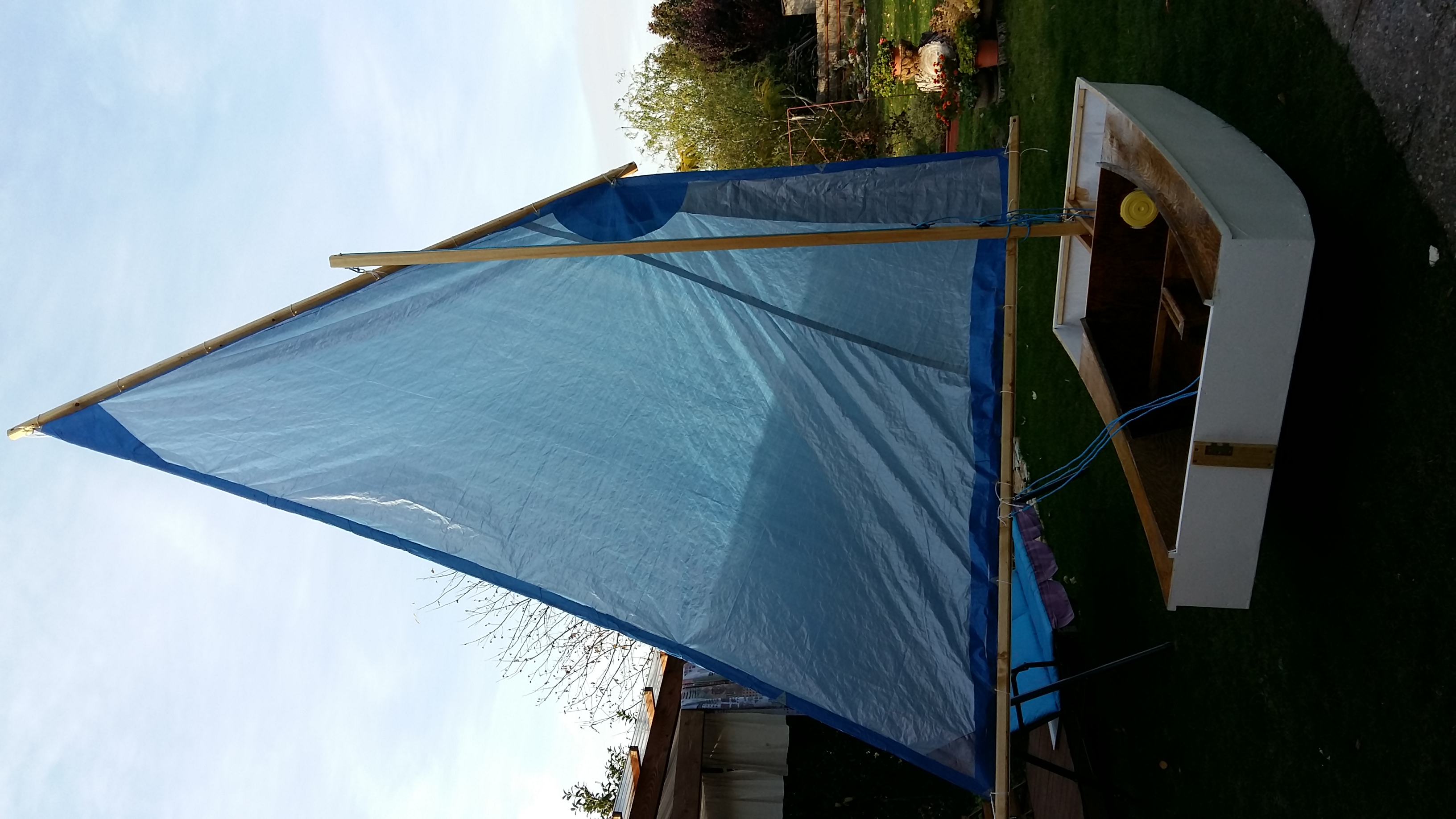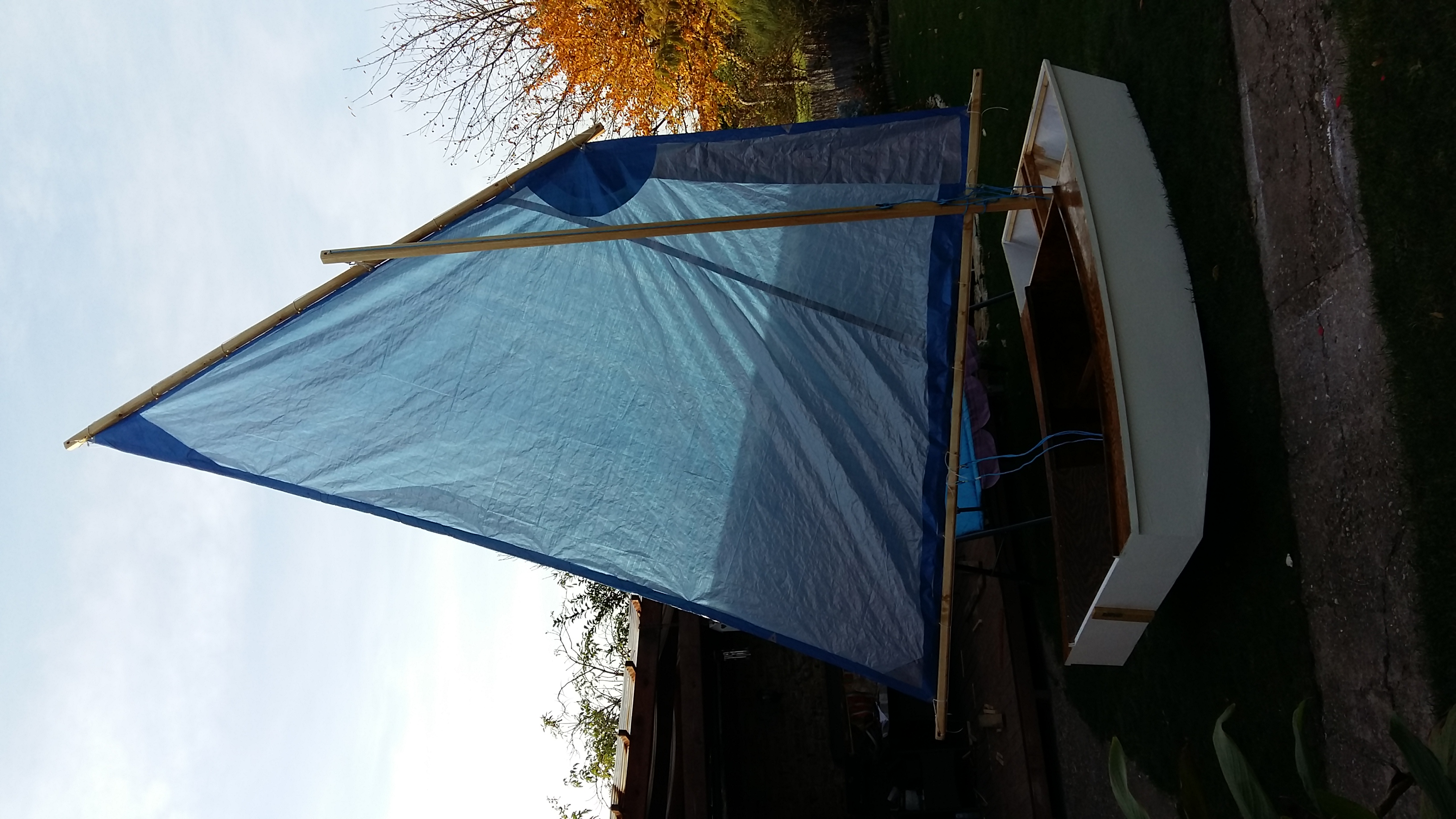 A to přesto, že jsem dostal darem dacron z rogala - teoreticky stačí dva klacky a můžu ho použít, jenže... to by nefungovalo se stávajícím kýlem a kormidlem - a já už fakt chci přestat stavět a začít plachtit