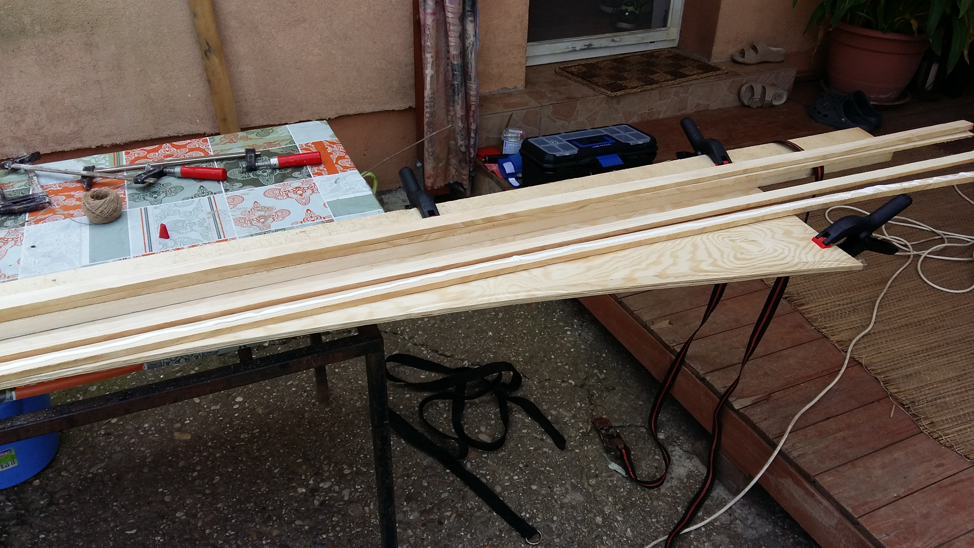 Ahojte, som tu novy, som zo Senca, pri Bratislave a mame tu dve jazera, tak som sa jedneho dna rozhodol, ze by som to vyuzil a postavl som si malu plachetnicku. Co najlacnesie a najskladnejsie. Asi pred 15 rokmi som si postavil podla knizky p. Ziziusa kanoe potiahnute platnom, na ktorom som chodil niekolko rokov na Maly Dunaj aj so synom, bolo to prekvapujuco celkom slusne kanoe, rychlostou a aj manevrovatelnostou. Takze zaklady som mal. Po dlhom prezerani internetu som nasiel PD Racer a potom na stranke www.storerboatplans.com som nasiel plany na OZ Racer MkII, co je v podstate to iste len sa nemoze kvoli trochu zmenenym rozmerom zucastnit pretekov, nemoze byt registrovana. Ale to mi vobec nevadilo. Plany stoja 30 USD e-mailom. Su celkom zrozumitelne a podrobne. Niesu to vykresy 1:1, treba si to rozmerat na preglejku, ale nic zlozite. Postavil som to z 3 ks preglejky 6mm, tusim borovicovej z Jafholzu. Zacal som stavat na jesen 2016, na jar 2017 som to v podstate mal v kope (cez zimu som nerobil) a na jesen som bol 2 x na vode, kde som nasiel niekolko problemov, ktore som v roku 2018 poodstranoval a na jesen 2018 som bol uz celkom spokojny, este to trochu chce vychytat muchy, ale uz sa na tom da slusne povozit. Lepil som to vodovzdornym lepidlo Pattex a sroboval, sroby som nechal aj po zlepeni, nic som nevyberal. Je to bez pouxitia epoxidu, ani rohy som nelaminoval. Chcel som to co najlacnesie. Na povrchovu upravu som pouzil fermez, rozne odtiene moridla, lod je vnutri trochu dvojfarebna