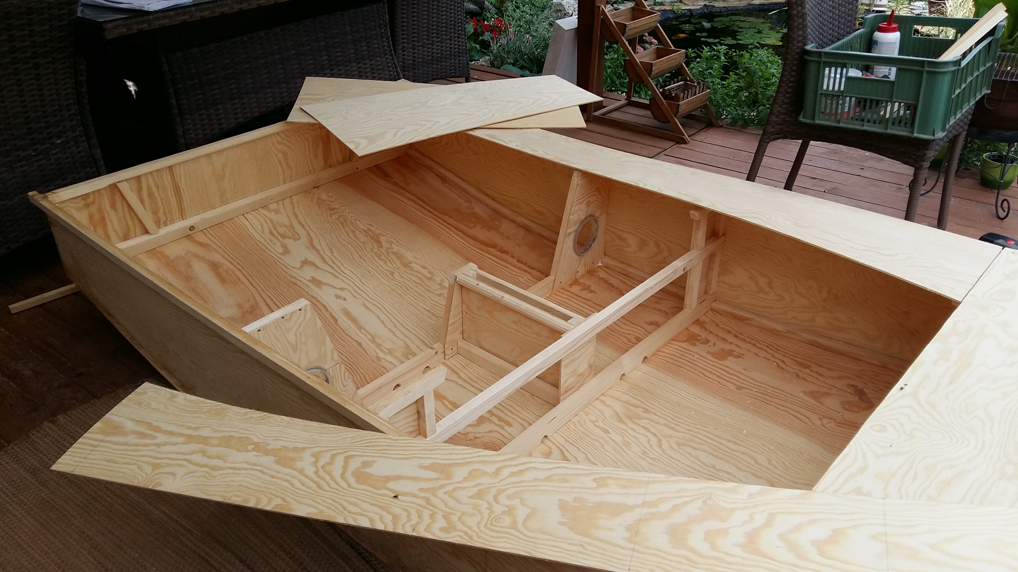 Dodělat vesla – pádlování je fakt za trest- loďka je široká a krátká a tak nedrží směr. Možná pomůže kormidlo?? Bude nutná i sedačka.