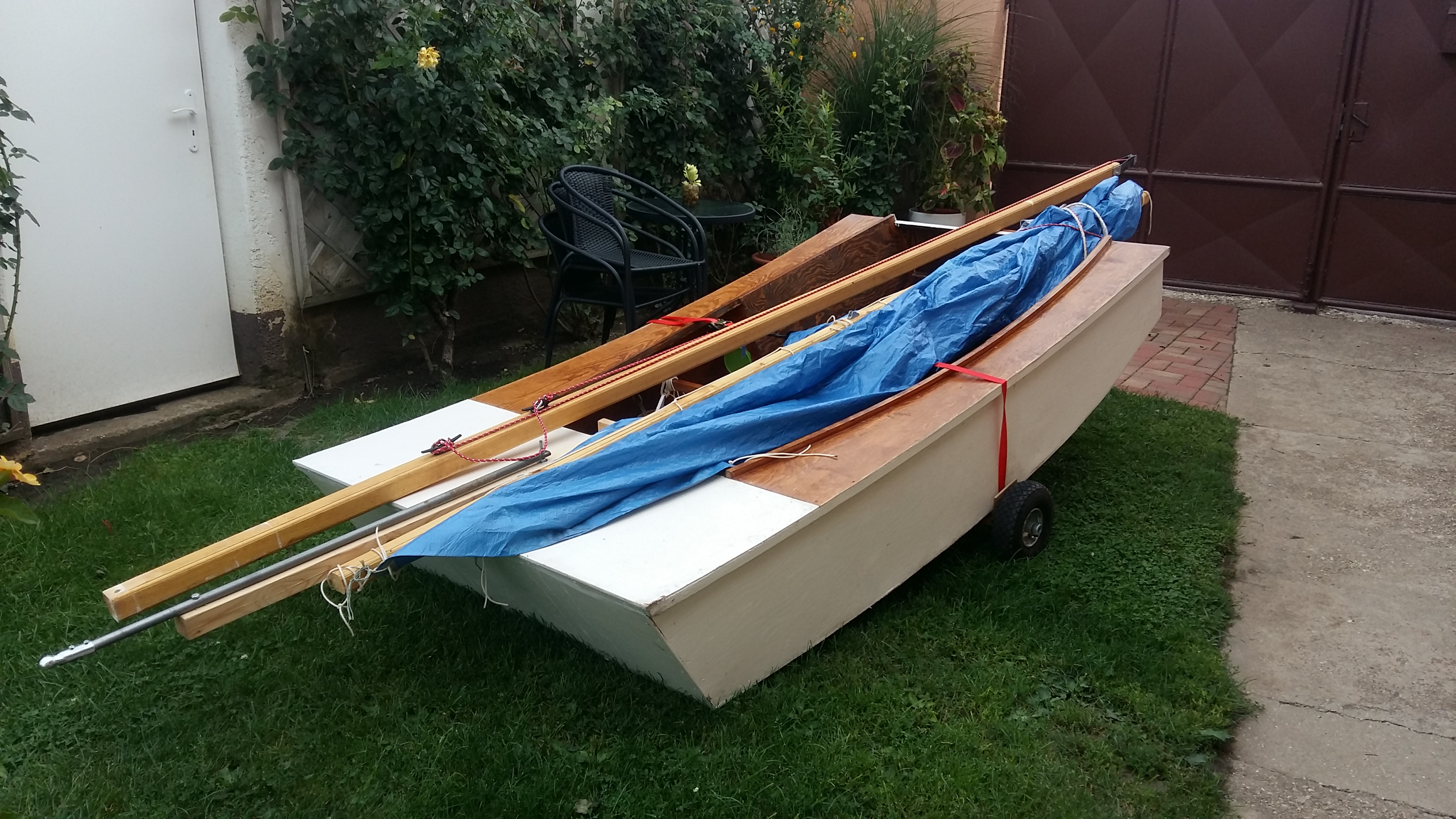 . Mne sa tiez na tento typ lode paci. Na lod som si vyrobil dvojkolesovy vozik a do otvoru na stazen tazne zariadene, moznost tahat za bicyklom, alebo rucne[image][/image]. Lana a kovanie je z Bauhausu, maju oddelenie s vecami na lod, alebo Hornbachu medzi zeleziarskym tovarom maju kladky za par EUR. Vsetko co najlacnejsie. Napr. zaves kormidla je z dvoch pantov z Hornbachu ktore maju vyberatelnu os, len som kupil mosadznu gulatinu ktora tam pasovala a spojila dva panty. Este musim vyrobit nove kormidlo, lebo na tomto mam maly kormidelny list, vyrazne oproti planu, na jar by som to chcel dorobit. Ale islo to aj s mensim. Max. rychlost zatial mam 6,17 km/hod podla GPS, ale vietor bol dost slaby. Rad by som prilozil fotky, ale netusim ako na to.