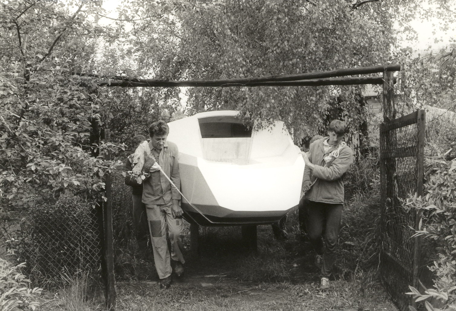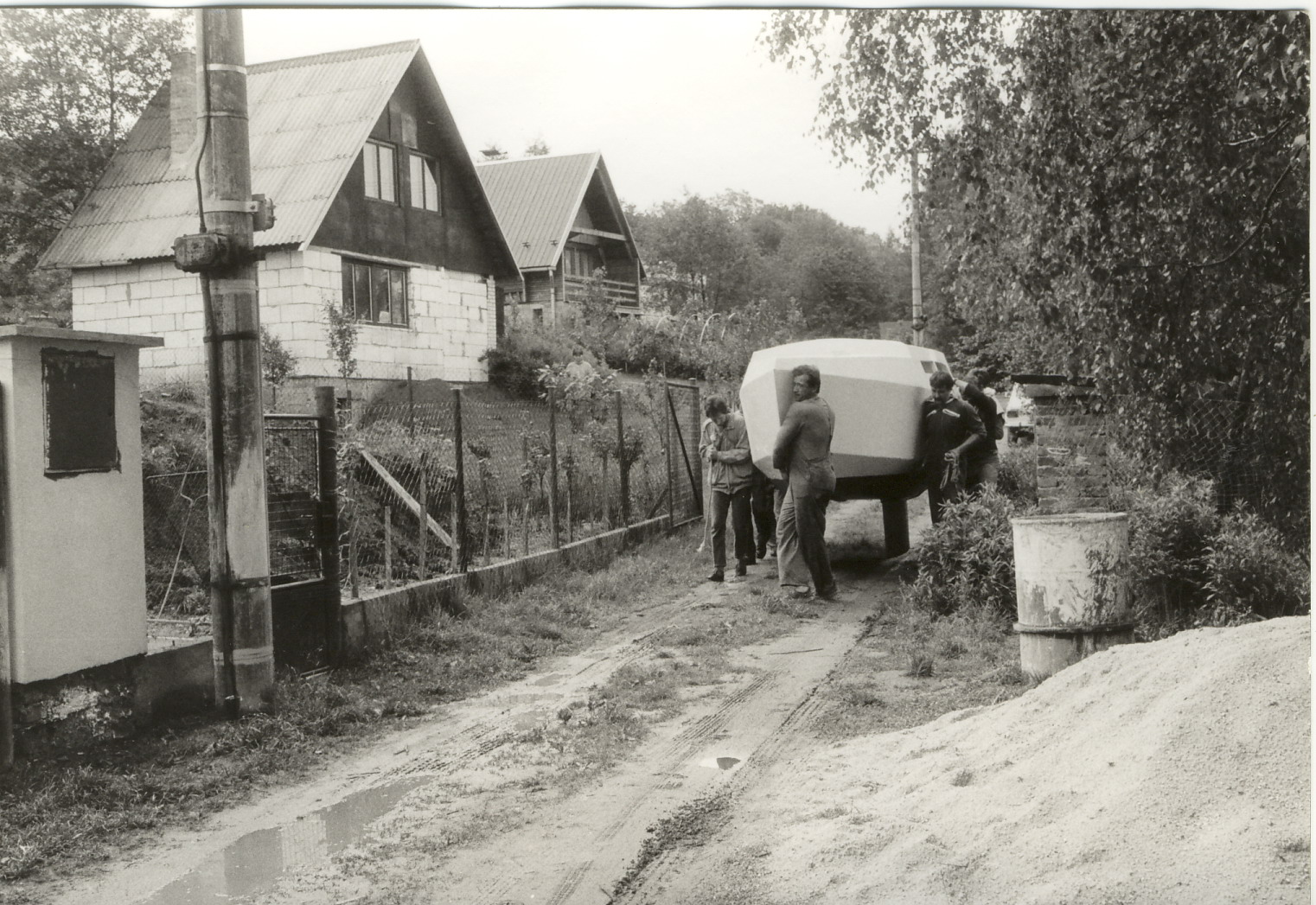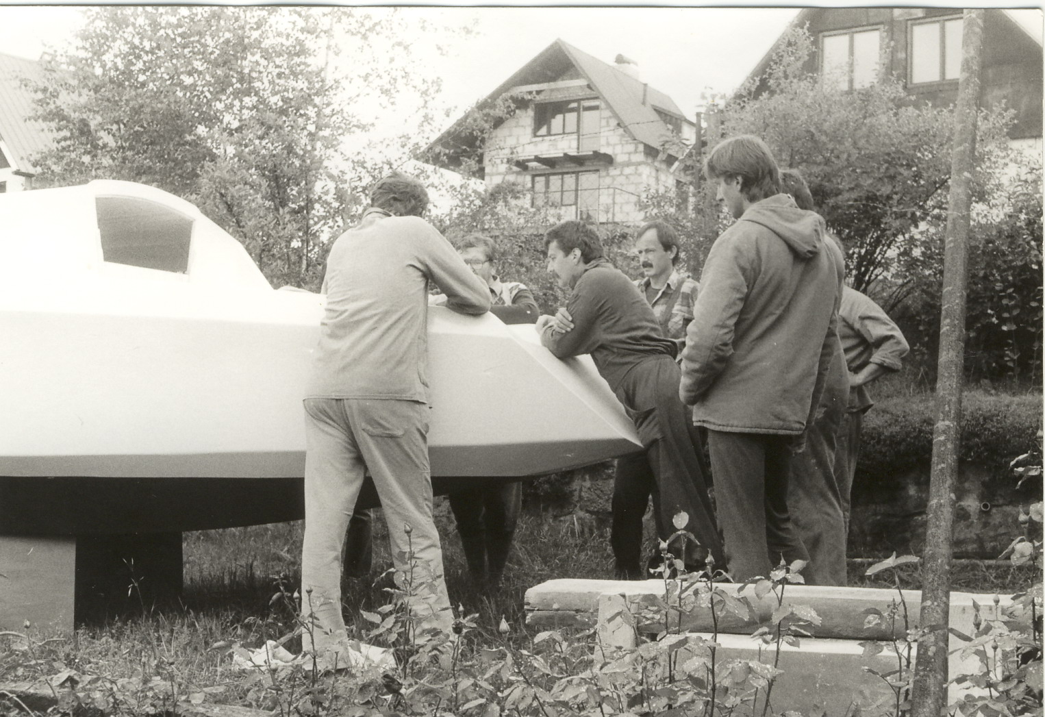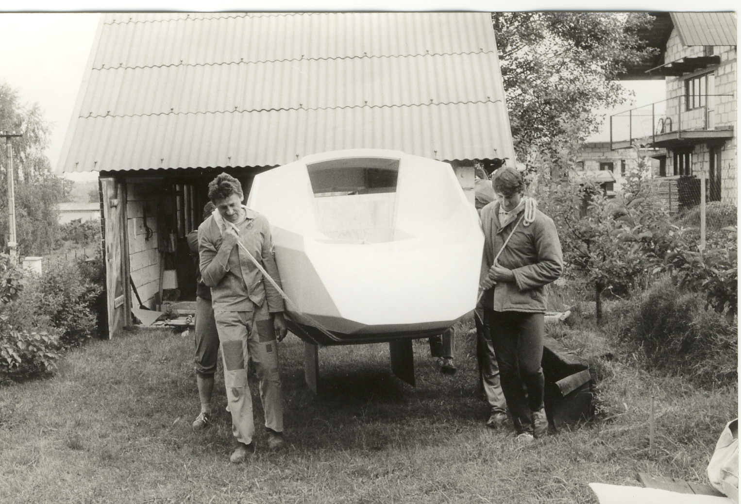 Svoji první loď, dvoukýlovou 5,5 metru dlouhou kajutovou plachetnici jsem začal stavět ve sklepě paneláku. Bylo tam teplo i v zimě, prostor byl velký, jen jsem byl limitován dveřmi 120 cm. Vyrobil jsem tak přes zimu všechny přepážky, kýly, kormidlo, díly interieru, kování..vše co se dalo vynést po schodech ven. Brzy na jaře jsme s bráchou na jeho pozemku za 3 měsíce postavili hrubou stavbu chaty 6x6 metrů z tvárnic, přízemí zatím bez přepážek, nahoře si brácha dodělal podkroví. Místo jedné stěny byly provizorní vrata, když bylo teplo vyvážel jsem rozestavěnou loď na podvozku ven.