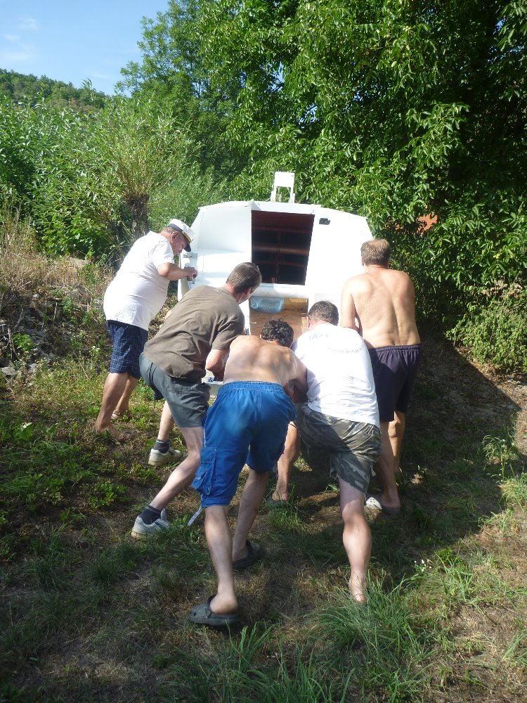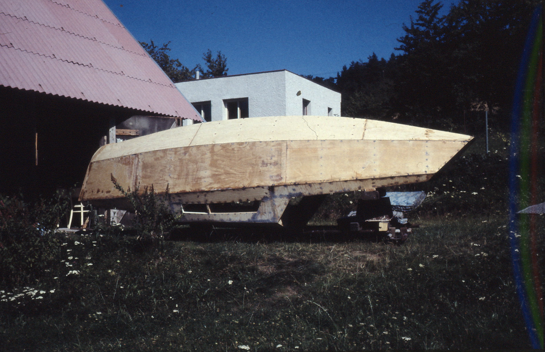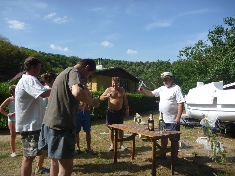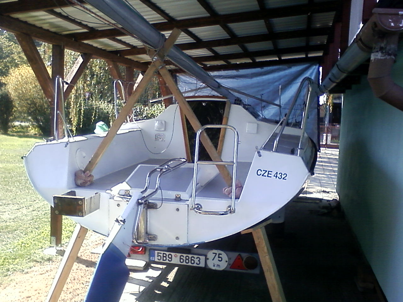 Po dokončení stavy jsem si loď převezl na sousední pozemek, který jsem mezi tím koupil a brácha si chatu dokončil.