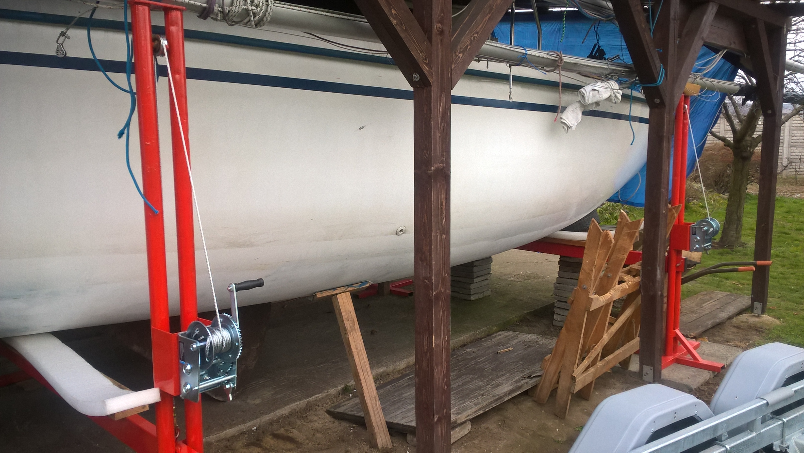 postavil jsem si přístřešek vedle garáže se zvedacím zařízením, jen byl původně na menší loď....