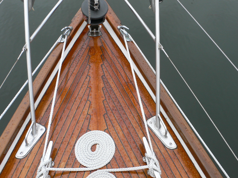 Celou plubu jsem kompletně položil včetně všech šroubků. Je jich tuším 2500. Pak jsem vše sundal, každou lištu označil a pak lepil. Šroubky zůstali v palubě a jsou zalepené. Nemám nikde na palubě dutinu pod teakem a žádnou vodu v sendviči.