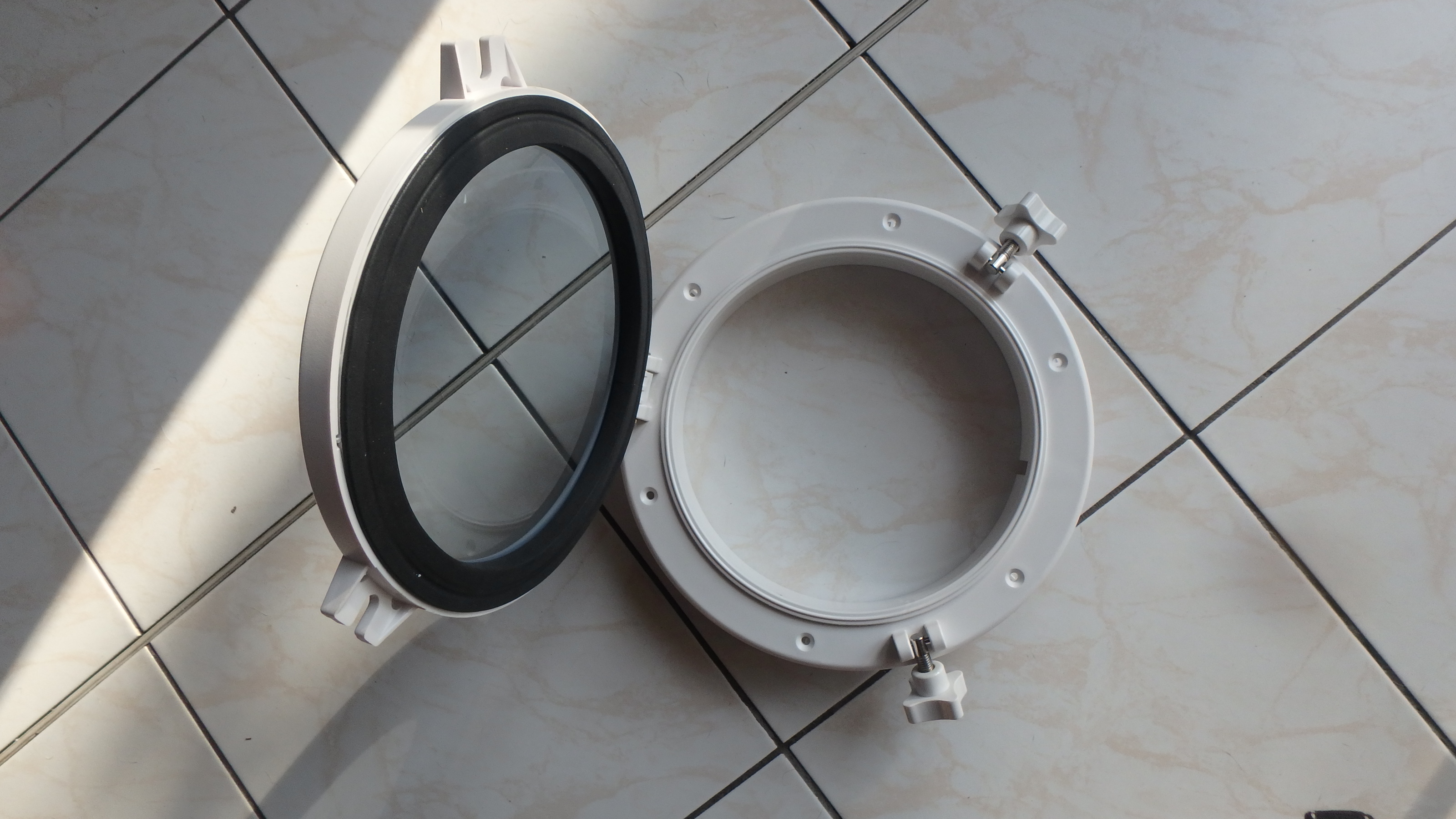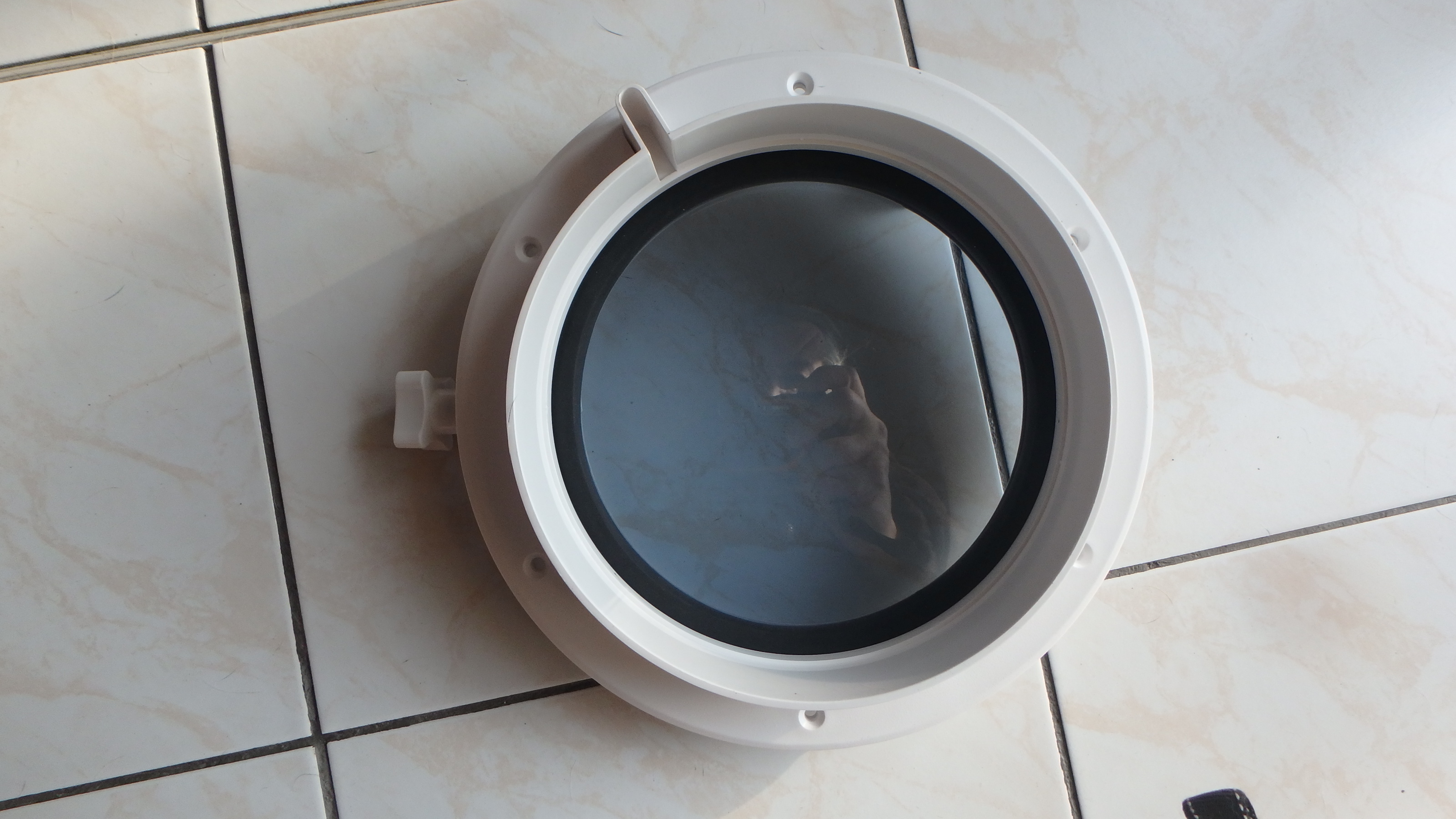 Potřebuji odvětrat " hund koji" a zároveň umožnit snadný pohyb našeho lodního psa z koje do kokpitu. S trochou obav jsem objednal z Číny bílé plastové okno, čistý vnitřní průměr 196 mm, kterým pes bez problémů proleze. Okno v pátek přišlo a byl jsem mile překvapen, že vypadá pěkně a odpovídá fotkám i rozměrům uváděných prodejcem. Cena 18.99 US $ + poštovné 12 US $. Mají různé rozměry, kulatá, obdélníková, oválná, barva černá a bílá. Jen je potřeba objednat včas, doba doručení cca dva měsíce. až namontuji, dám fotky.