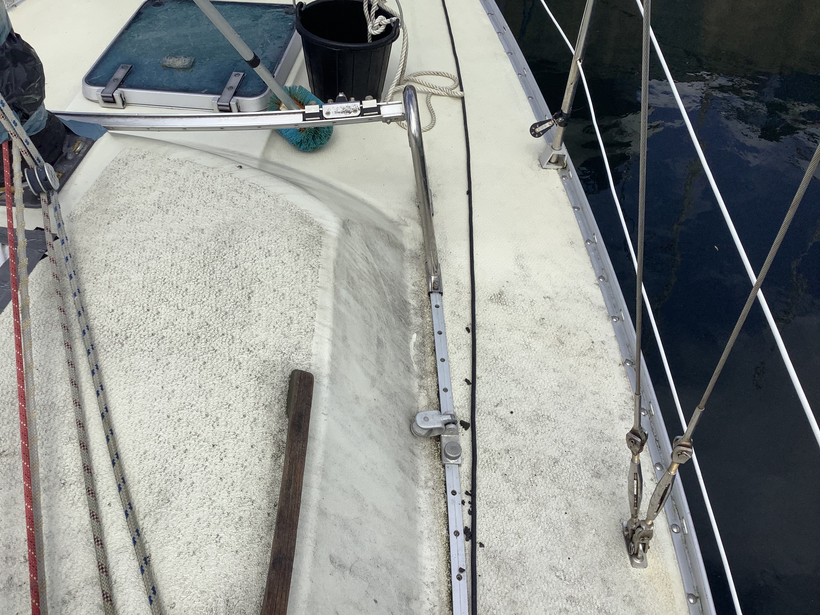 Atrapa ptáků moc nepomohla....Výměna zkušeností majitelů lodě