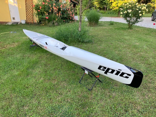 Na ich webe sme našli ponúkaný kajak V8. Bol neďaleko od nás, tak sme sa tam vybrali pozrieť si ho. Bol v skvelej kondícii, ozaj bez najmenšieho poškodenia, tak sme si ho zobrali. V júni pôjde s nami do Chorvatska. Už aby bolo teplo