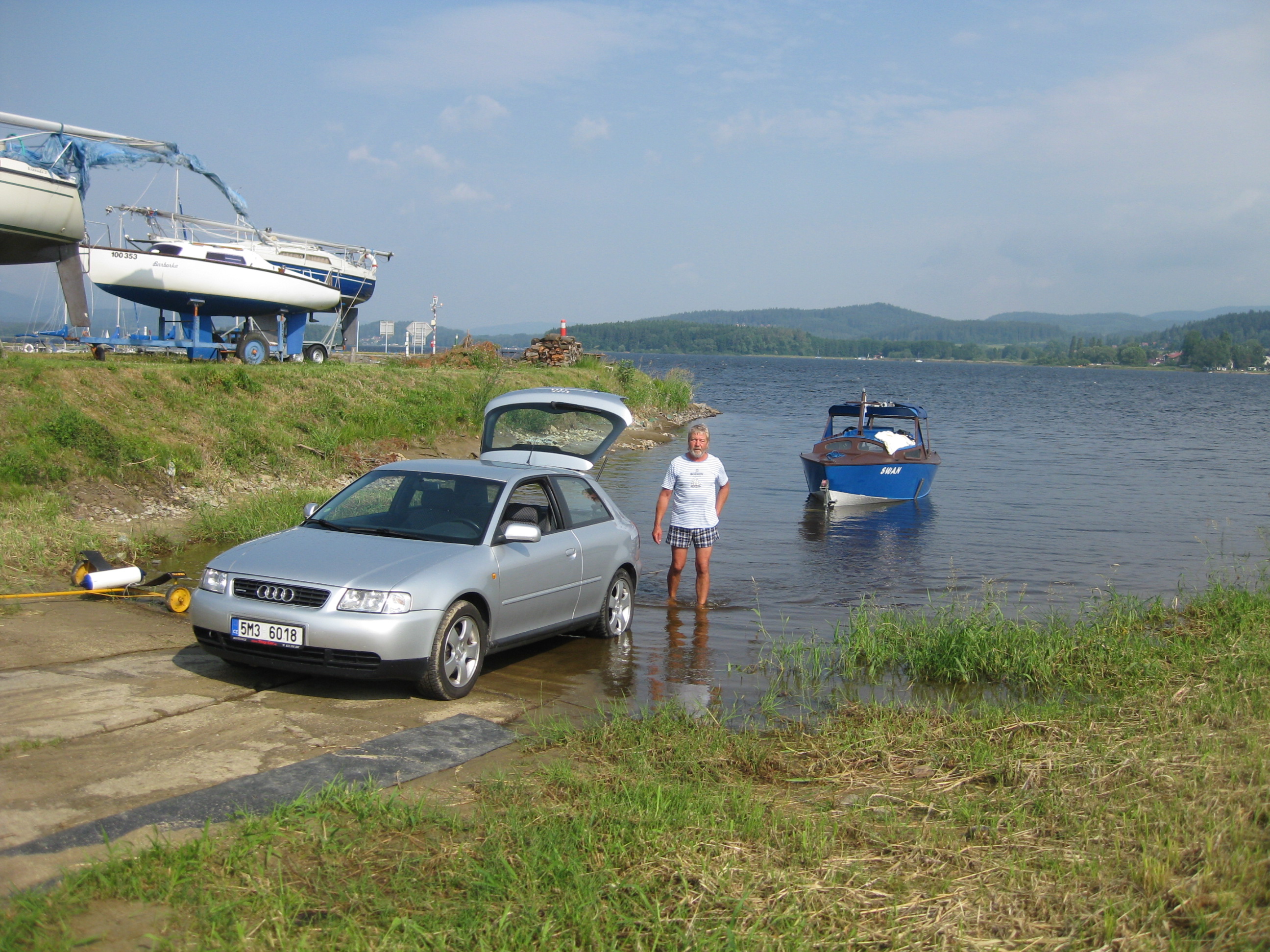 Ahoj, nevím na kolik Ti to pomůže, ale před několika lety jsem nakládal loď mého kamaráda, který na Lipně kotvil celou sezonu. Byla to Sportina a vyndali jsme ji z vody ve Frymburku u přívozu. Asfaltový sjížďák (bývalá silnice). Tahal jsem ji Fordem Galaxy (pouze přední náhon). Vozejk měl na zahradě u někoho z místních (za nepatrnou úhradu).