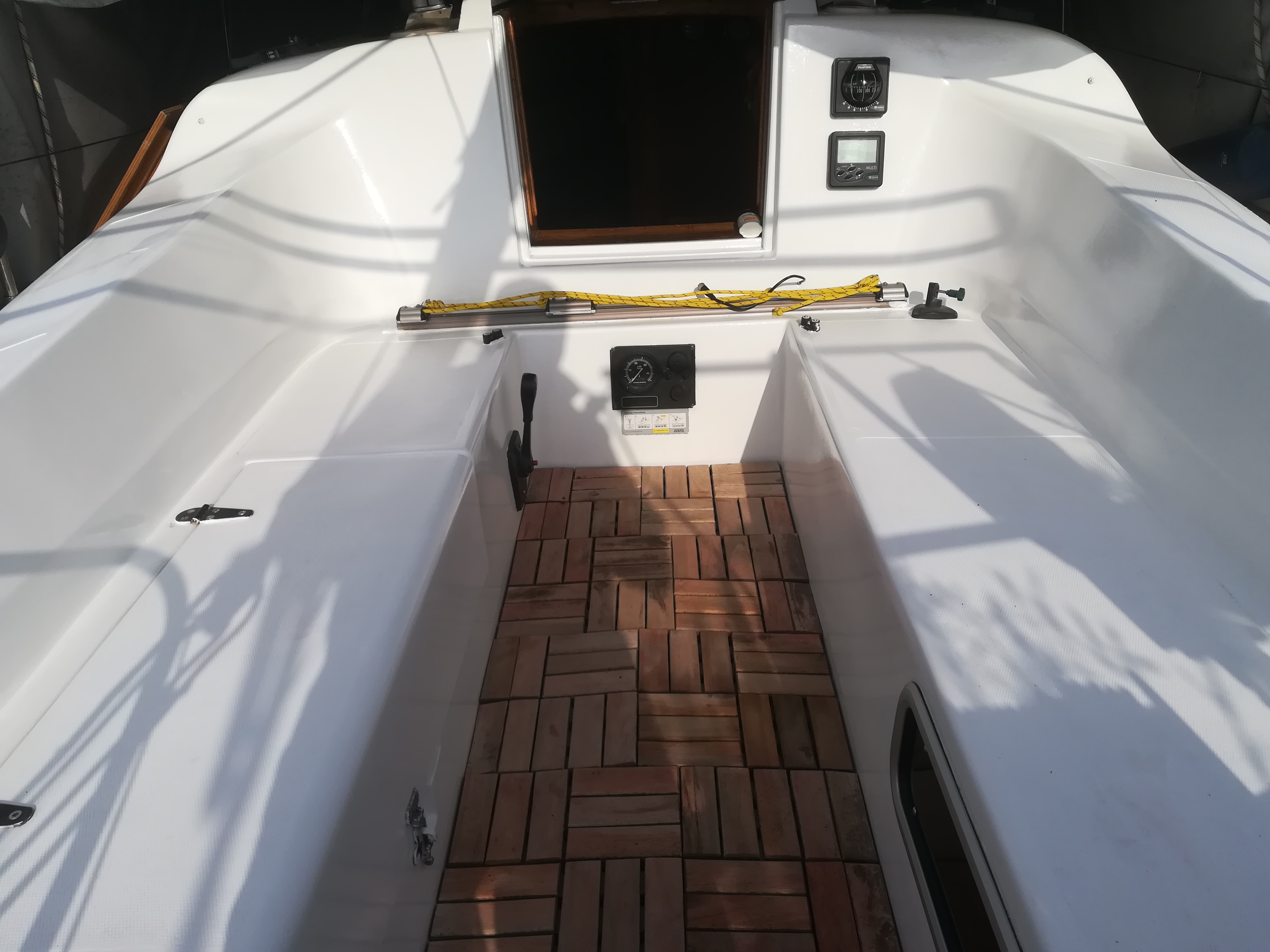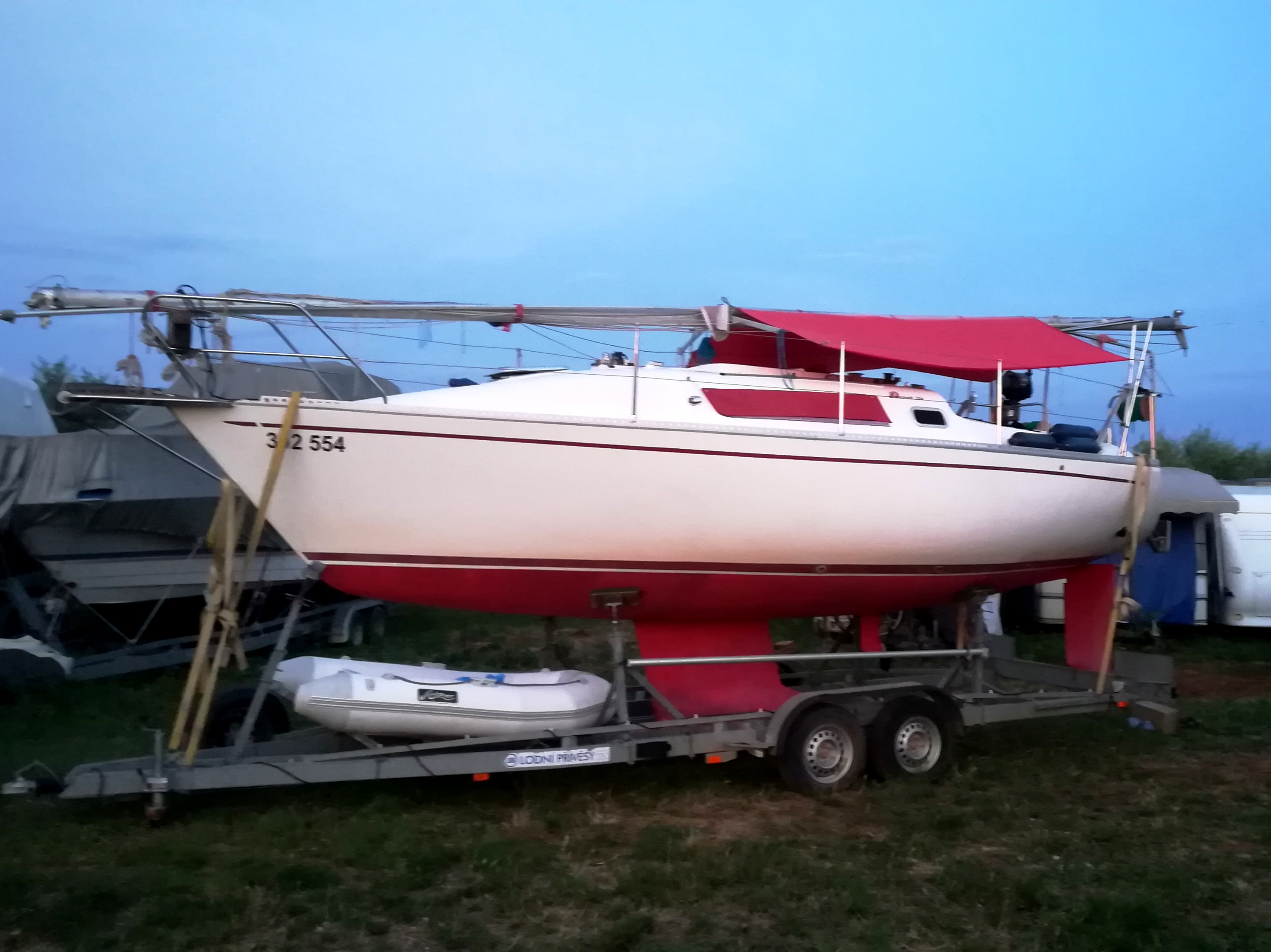Plachetnice délky 7,65m,šířky 2,78m,ponor 1,15m,Nové oplachtění(kosatka 2016,hlavní 2018)nové biminy,kočárek,lazy back,nosič na pomocný člun na zádi z nerezi,fekální nádr s macerátorem,nová servisní baterie 80Ah(2019),rolky na vyvazovací lana na zádi -každé 50m lana.Měnič napětí 12/230V 350W,nabíjecí satnice při připojení v maríně s rozvodem 230V,lednice 12/230V a plyn,síťky proti hmyzu.Navigace Navman s mapami HR ,autopilot atd .Velmi pěkná udržovaná.Možnost stání v HR za 300 Eu/rok 2 km od jeřábu a maríny.Vozík a pomocný nafukovací člun s motorem Mercury 3,3 k lodi.V ceně i nová STK.Více foto a info na antesroman@email.cz nebo tel:603813520