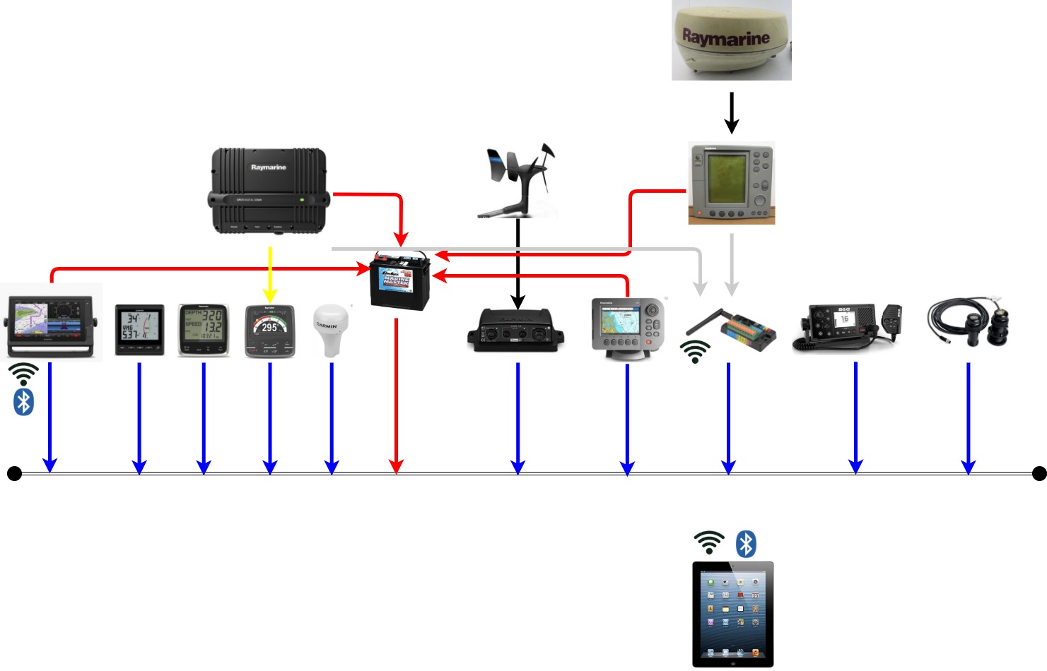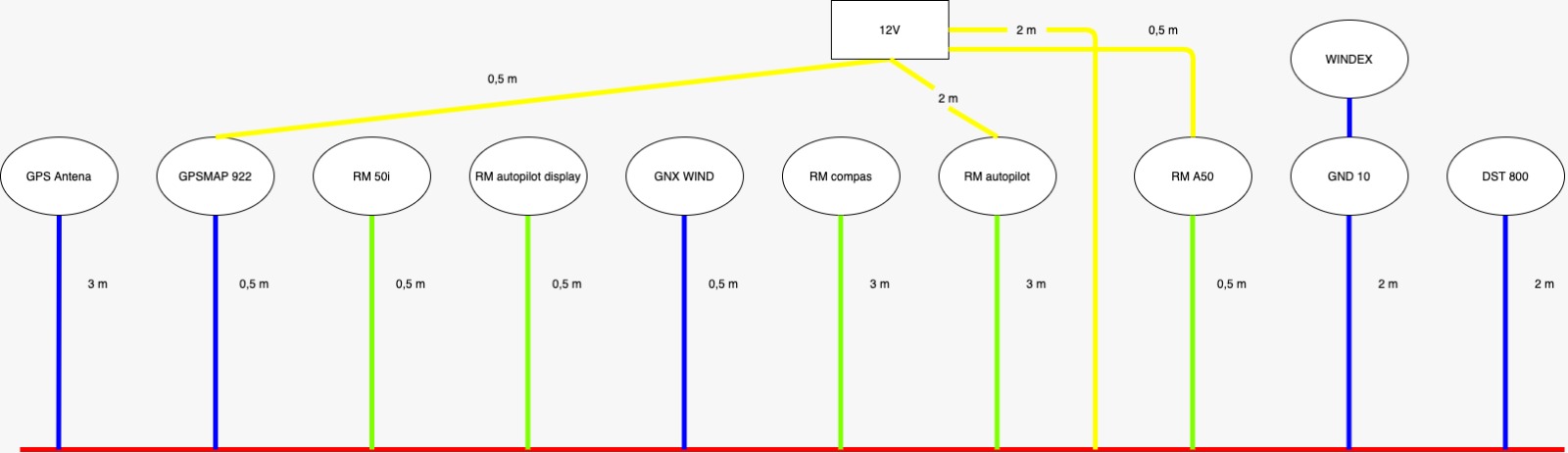 A zde je finální schéma (kromě VHF s AIS a multiplexer) už vše na lodi.