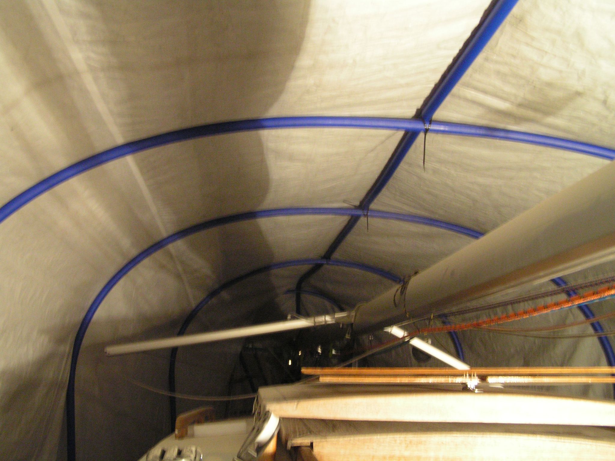 Pro naše účely bude stačit levnější materiál, který má plošnou hmotnost 250-300g/m2. Taková vám na lodi vydrží i deset zim. Plachta by měla být položena na konstrukci a ta by měla umožňovat volný průtok vzduchu nad palubou mezi plachtou a lodí, měla by být lehká, pevná ale i pružná. Konstrukce zabraňuje otěru mezi plachtou a jakoukoliv částí lodi, ať už palubou, nebo vyčnívající částí jako je zábradlí. Zabraňuje tvorbě prohlubní v kterých by se mohla hromadit voda nebo sníh, a zároveň poskytuje přístup majiteli do kokpitu a kajuty v zimním období. Konstrukce je vyrobena z běžně dostupných materiálů a komponentů a dá se snadno dovézt osobním autem do mariny, kde loď zimujete.