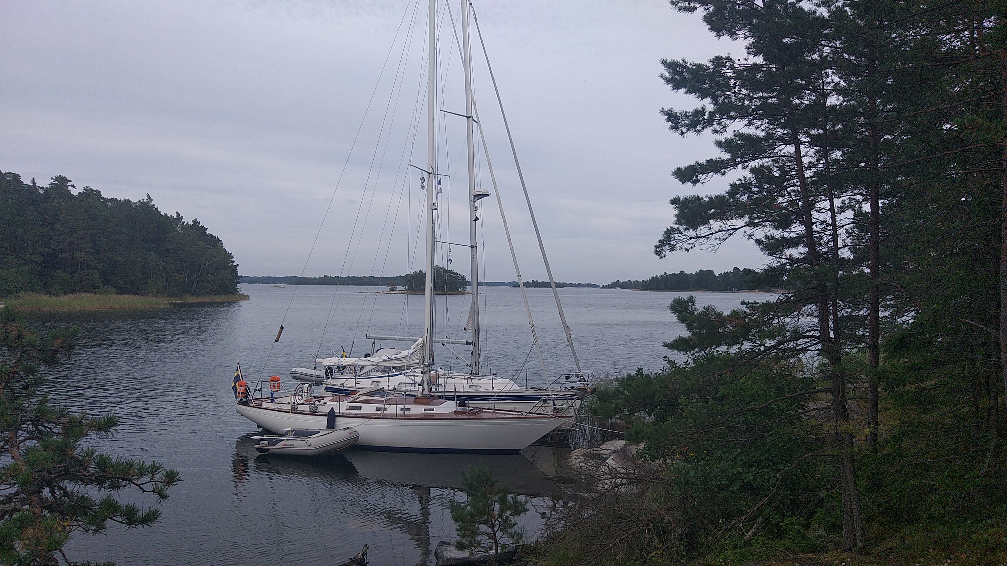 pokud by při kotvení kotva - břeh měla povolit kotva, nebo se jen posune po dně, tak je podle mne už lepší ze zádi lano odvázat a zůstat jen na kotvě a případně jí odlehčit motorem, a to kvůli rozdílu mezi bočnímu a čelnímu odporu trupu lodě vůči větru. Samozřejmě tohle jde za předpokladu, že je na to prostor a nestojí 10 m vedle mne další loď ...