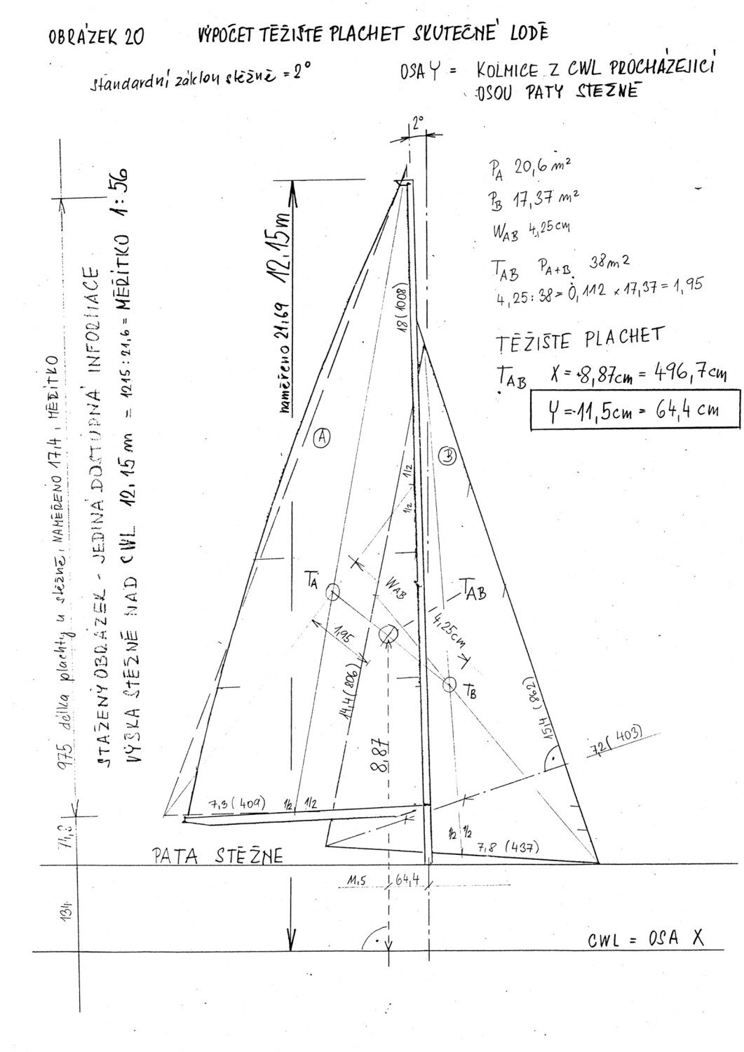 Případné zájemce jsem snad přesvědčil, že tento způsob výpočtu je dostatečný pro správné posouzení základního návrhu těžiště laterátu a těžiště plachet.