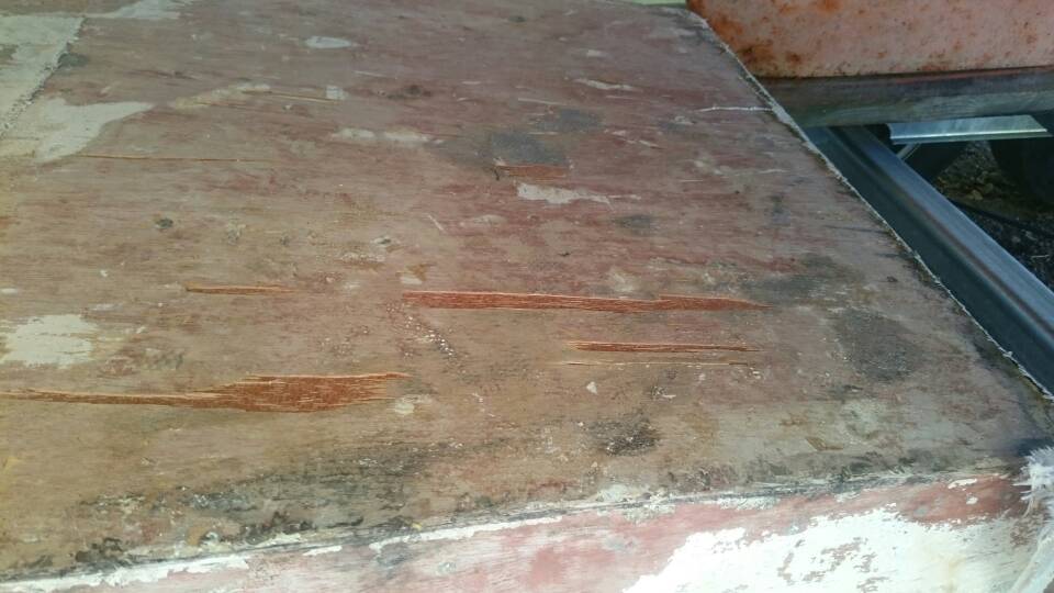 Pustil jsem se do opravy optimista, ztrhal jsem laminát co moc nedržel. Stačilobse pod něj dostat a už to šlo dolu. Teď mám čistě překližkovej trup a místy je ztržený kousek překližky viz foto.