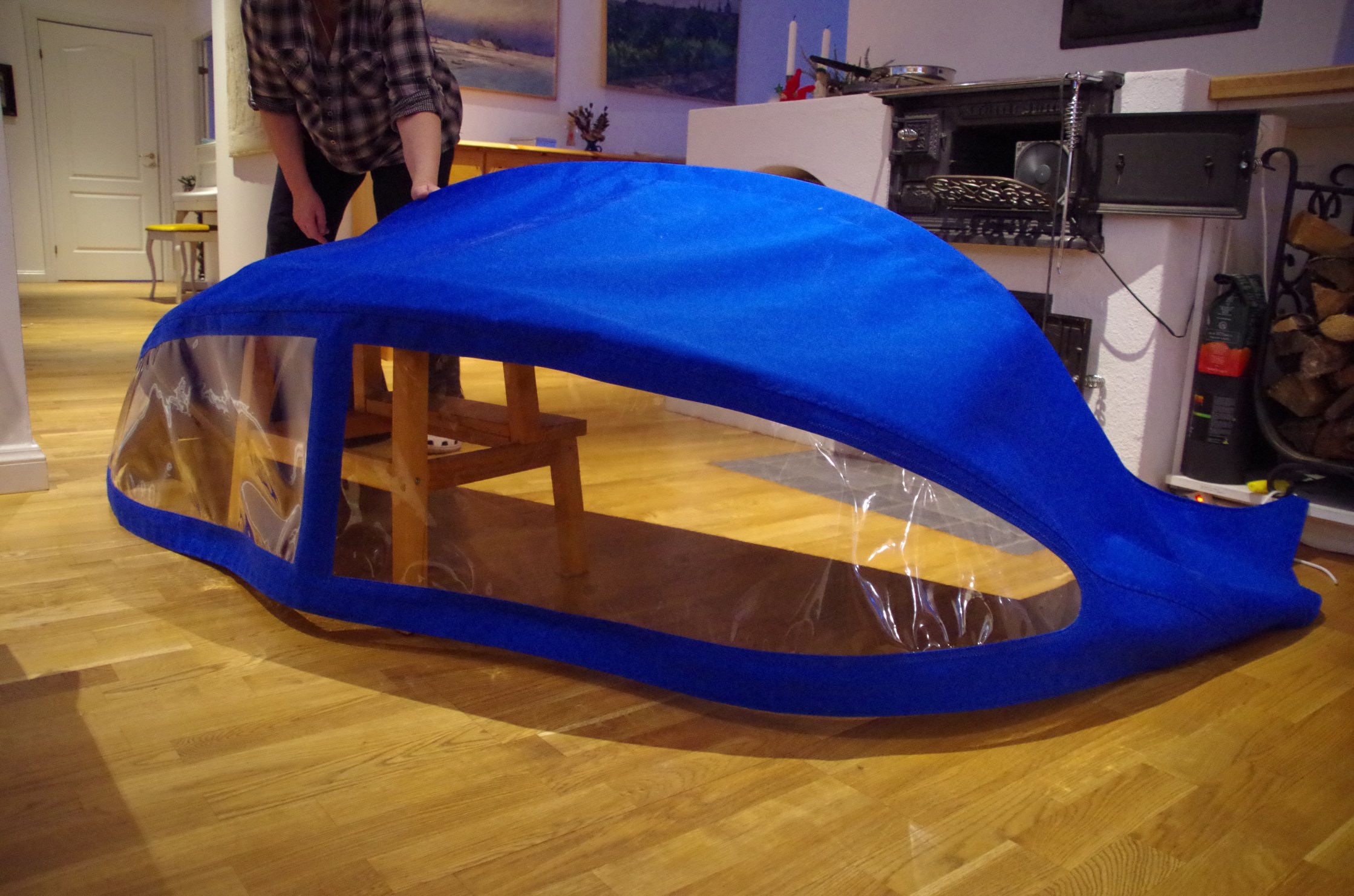 ano,za kus hadru je to hrozná cena,dělají střechy perfektně na veterány a podmínkou bylo přistavit loď,střecha by však byla vyrobena přesně na míru podle lodě a o trochu lépe by seděla,ale za tu cenu...nicméně ten pán z Písku měl pravdu,že životnost látkové střechy je maximálně 10-20 let podle prostředí,v garáži s občasným použitím 20 let,venku cca polovinu